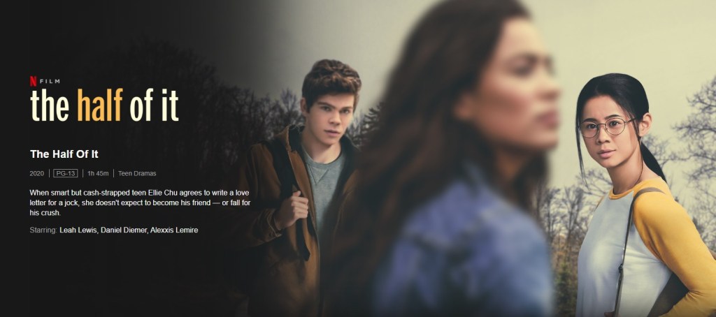 The Netflix original movie, The Half of It directed and written by Alice Wu (director and writer of Saving Face), is an interesting take on a high school romance drama. Interesting because, well, minor spoiler alert that the film gives away within the first five minutes – it isn’t actually a romance.