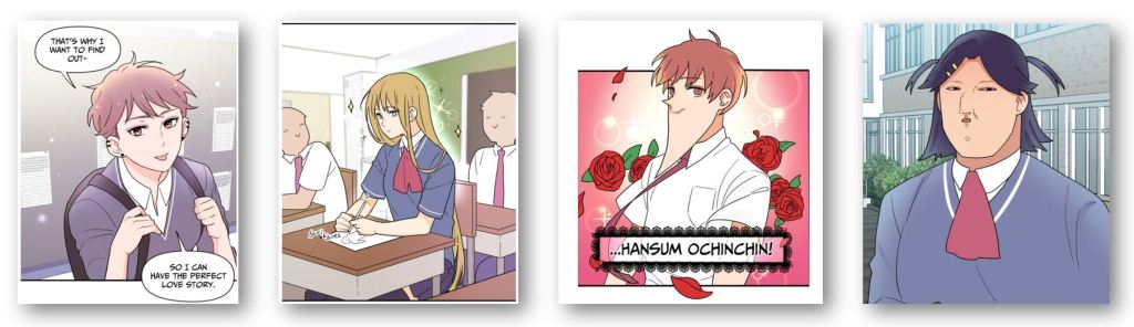 What appears to be a comedic story with the comedic narrative at times, ridiculous faces and poses that Curryuku draws in panels, is actually so much more than just a silly high school story. This story tackles a lot of big emotions and themes, some of which readers haven’t seen the full extent of yet (but I’m sure they’ll be addressed in future seasons of the Webtoon). Rei has some dark traumatic reason she’s transferred school so many times, there’s bullying, dealing with superficial friends, the trials and tribulations of being popular without really having any friends, as well as coming to term with your sexuality, and unraveling what you thought you knew you wanted in life and realizing you had no clue all along.